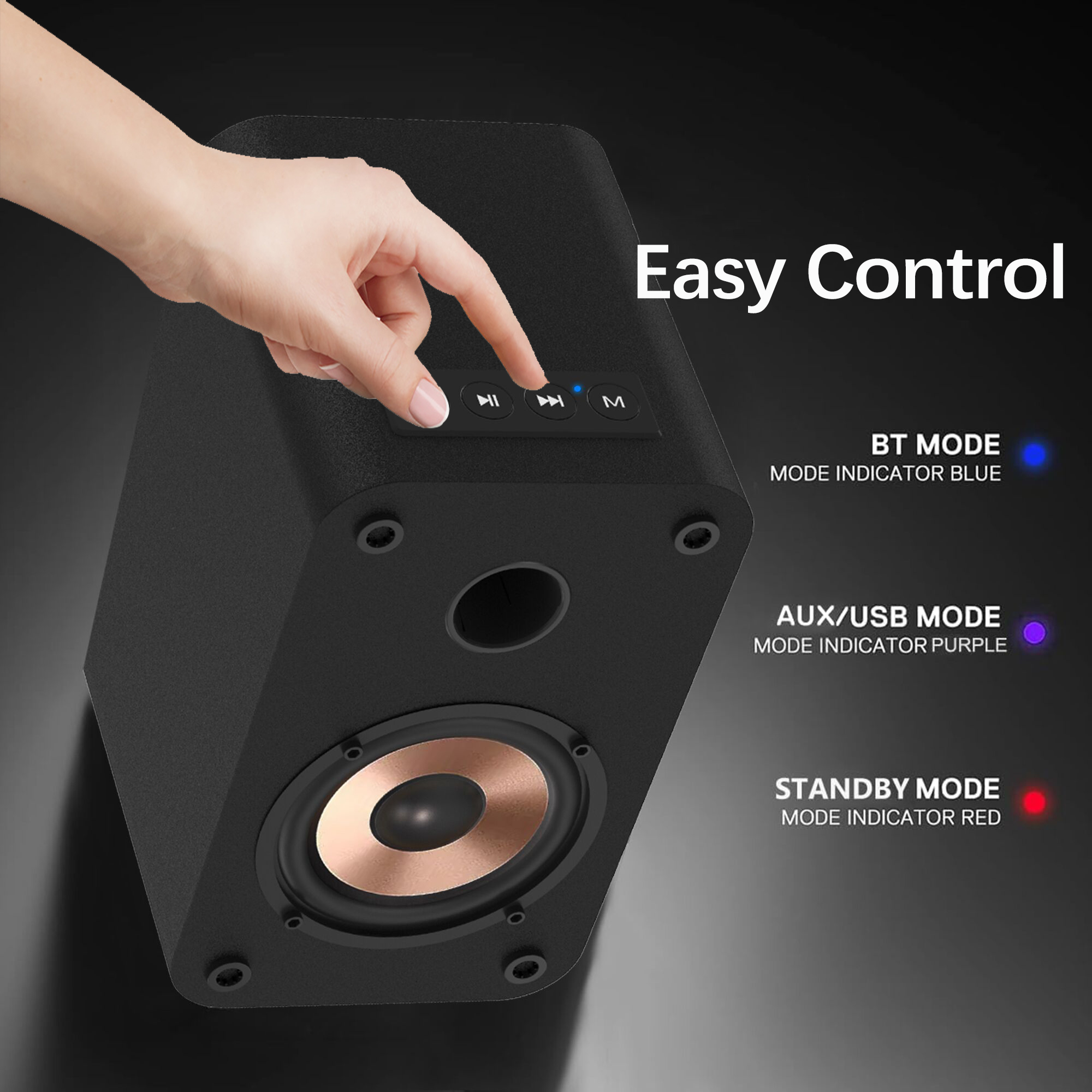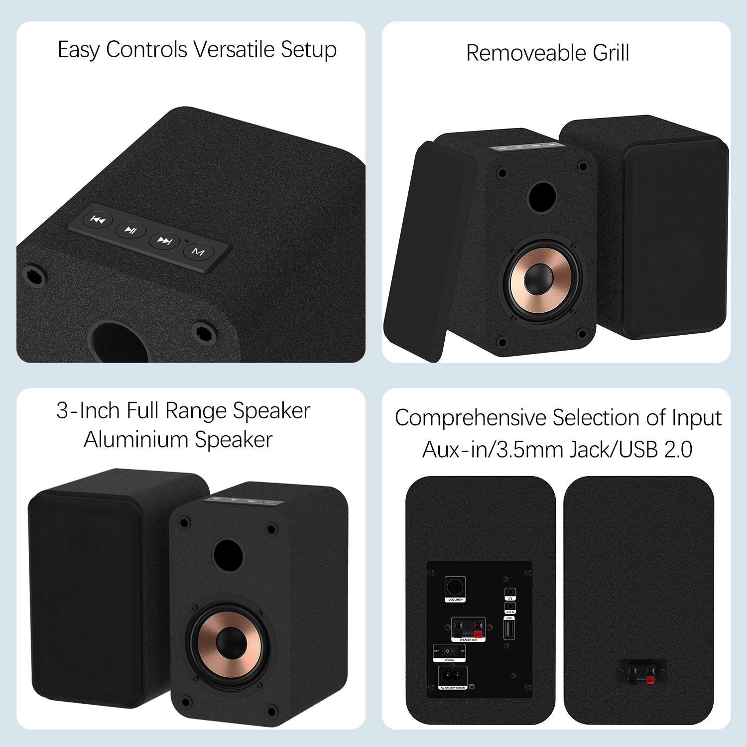 30W RMS Active Bookshelf Speaker with 3-Inch Full Range Speaker,Support USB Playback,Aux-in and 3.5mm Earphone Port
