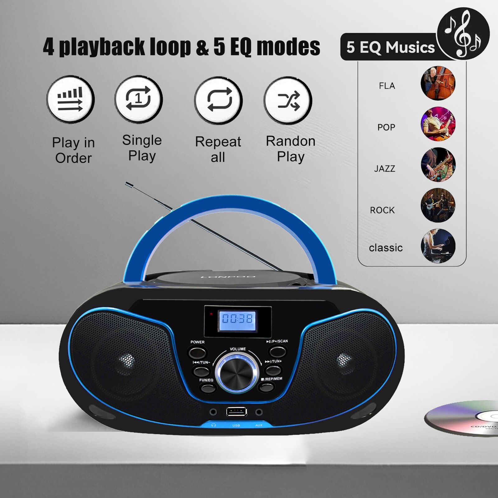 Portable Stereo CD Boombox LP-D02