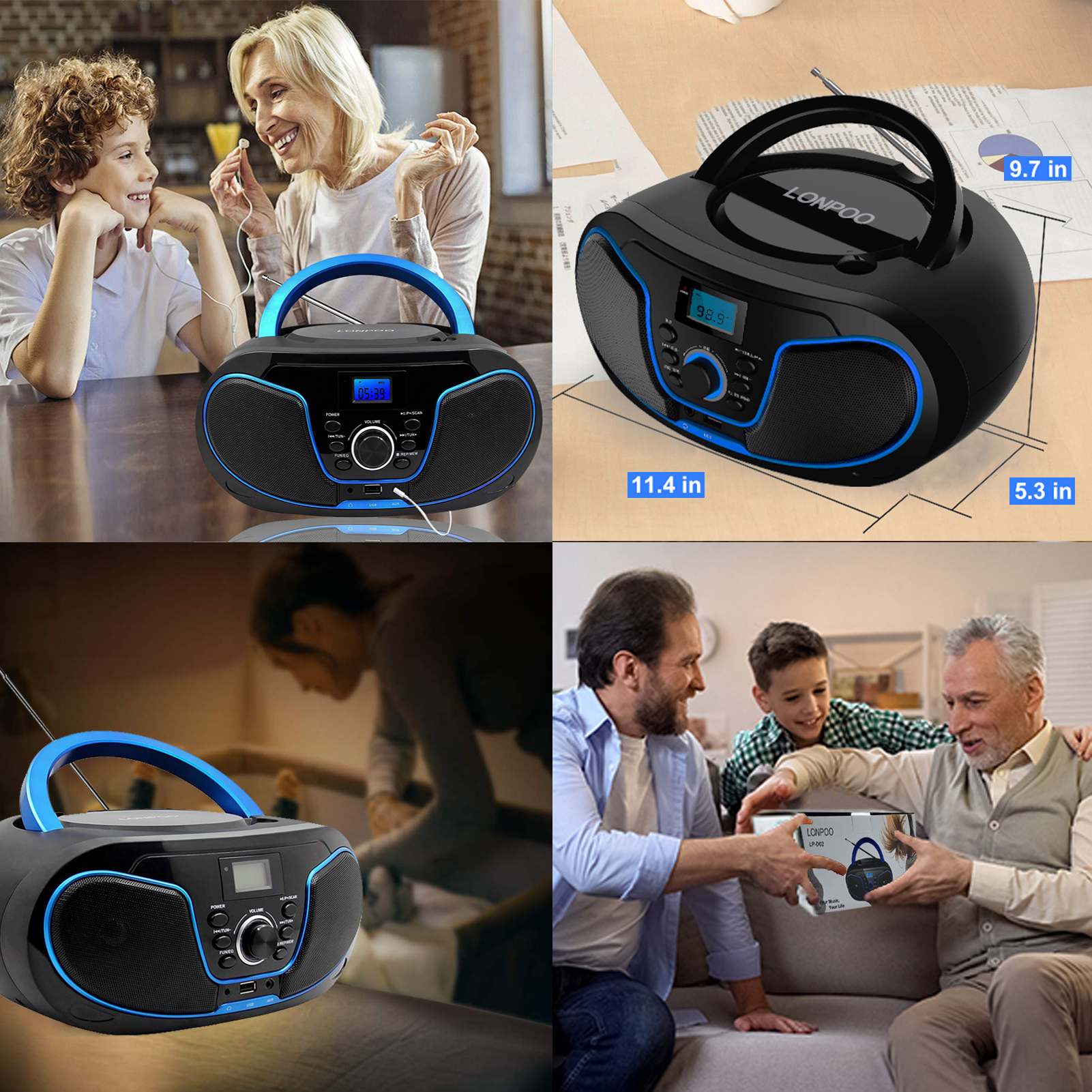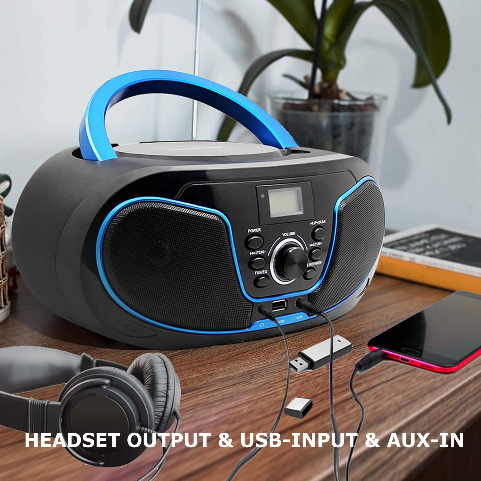 Bluetooth Digital Tuner FM Radio CD Player with USB Playback,Bluetooth-in,AUX Input and 3.5mm Earphone Output & Music Sound System