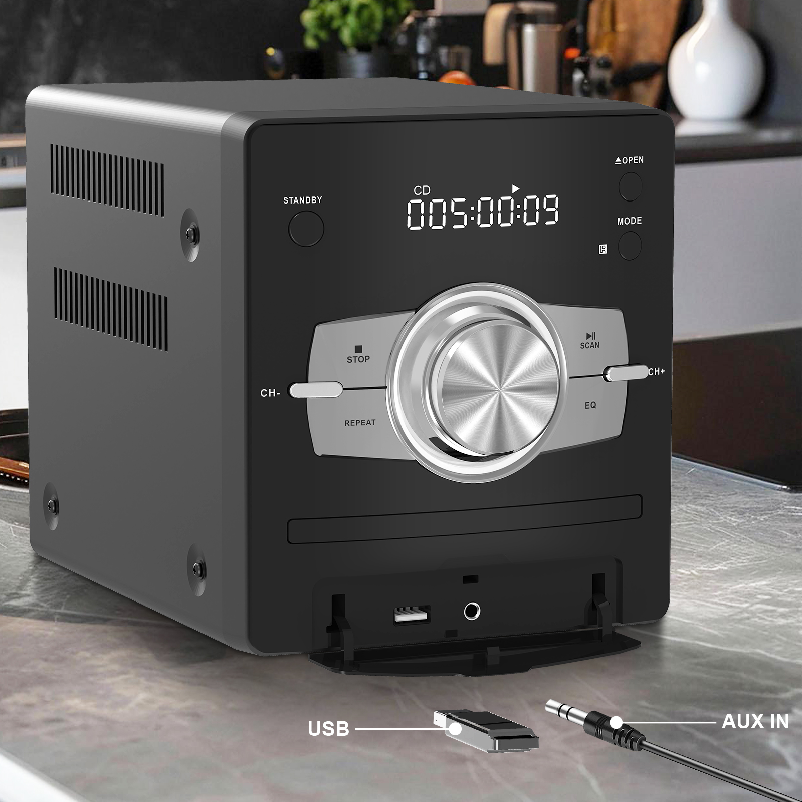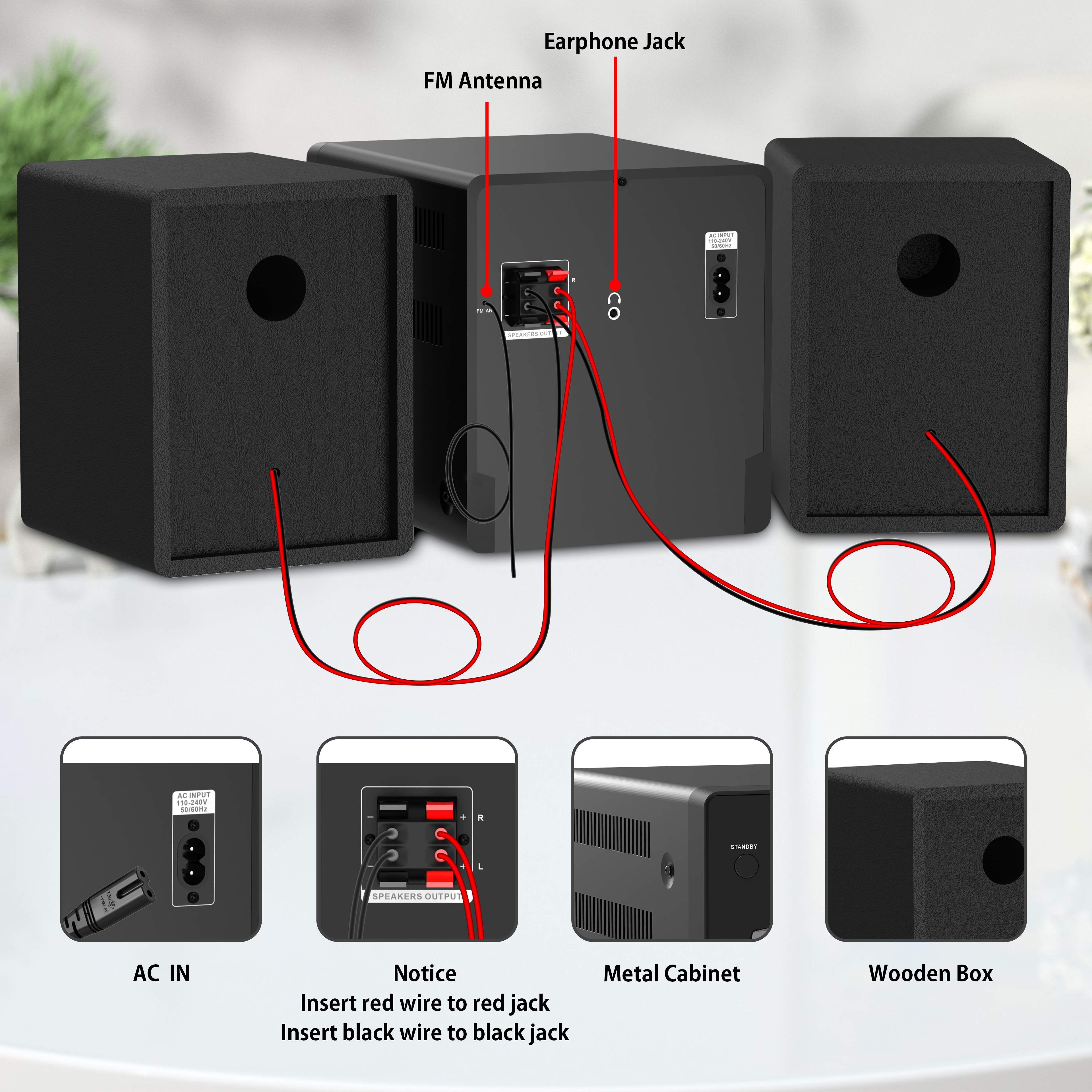 FM Radio, Bluetooth, AUX in, USB in, Earphone Jack, Remote Control Included, 30W HiFi Shelf Stereo System