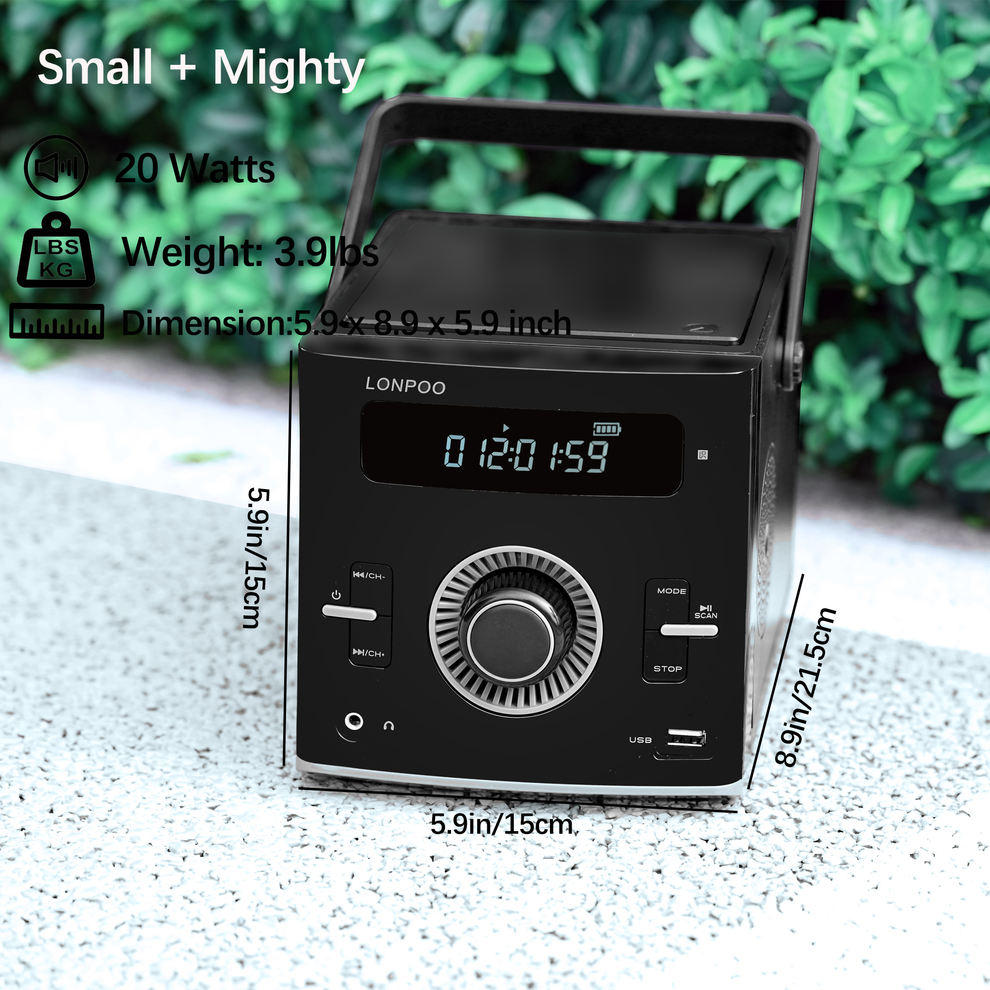 Rechargeable 2000mAh Battery Build-in, 4-Hour Playtime, 20 Watts RMS, Support USB Playback,FM Radio,3.5mm Earphone Jack & Microphone Port,Black