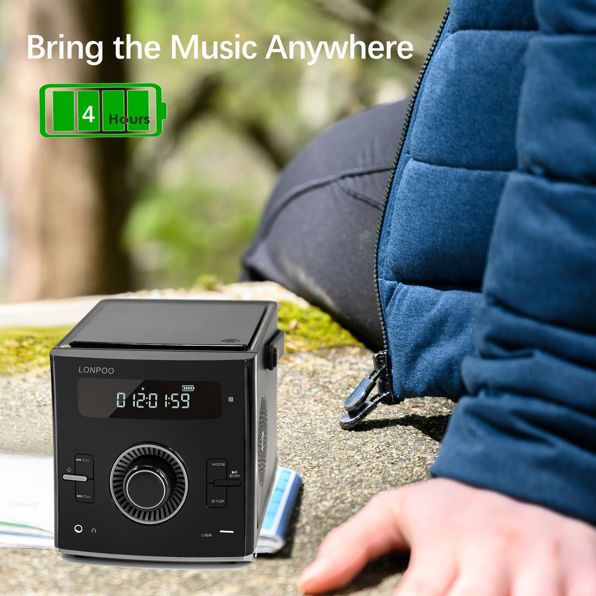 Portable CD Player with 2000mAh Battery,LP-118,Black