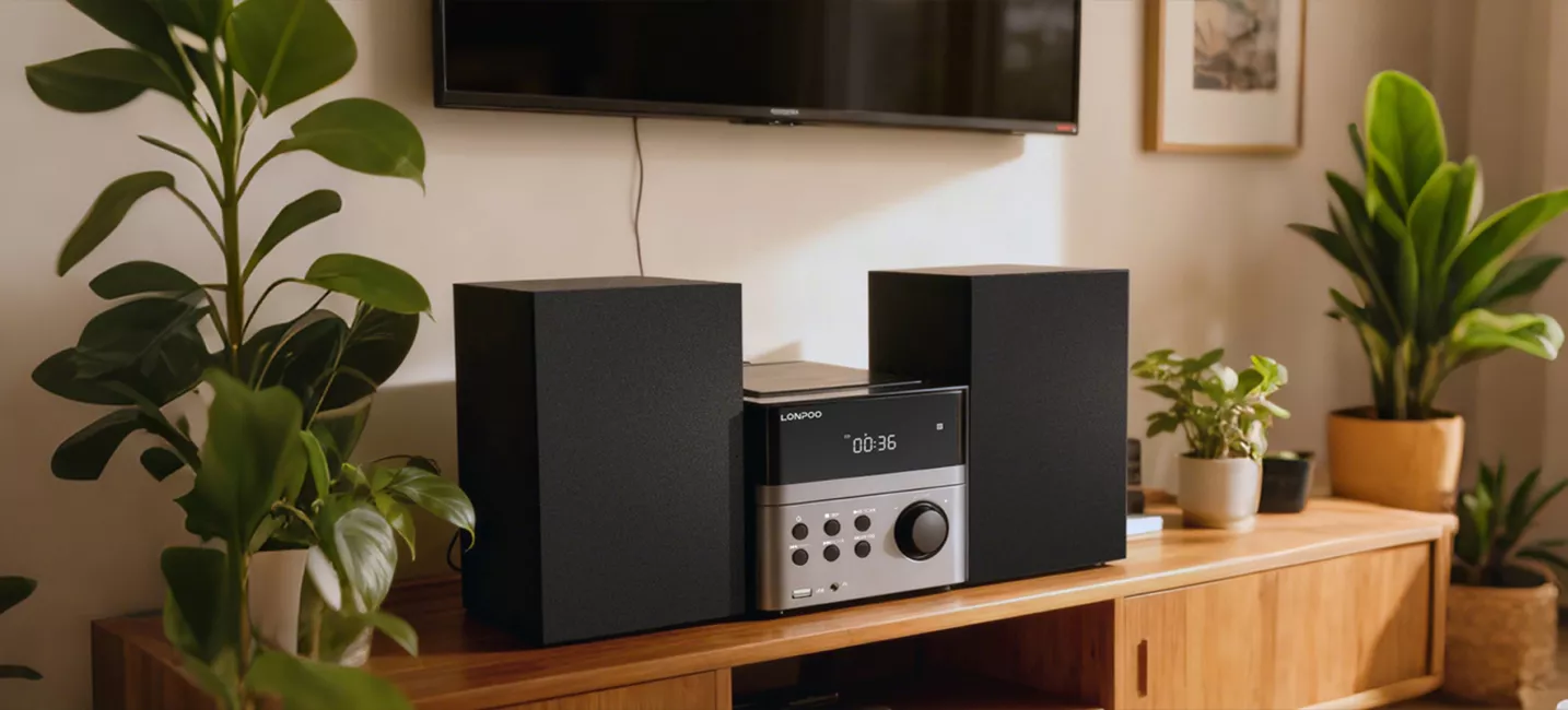 Wireless BT Portable Boombox Speaker 15W Rechargeable Aux Plastic Barrel Loud Stereo System with Display Screen and Battery Life